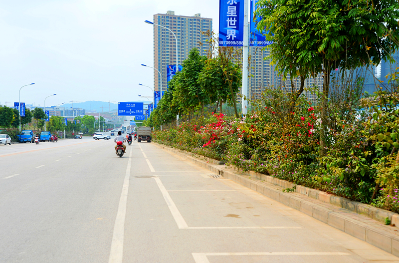 本項目位于金陽路,于201412月開工,20151月完工,綠化面積約2700㎡,種植主要品種有:人面子、黃金香柳、夾竹桃、、硬枝黃蟬、紅繼木、三角梅等