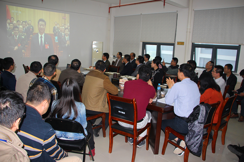 金秋十月,南國(guó)綠城花正艷。1018日,黨的十九大在北京勝利開幕。當(dāng)日上午9時(shí),綠港集團(tuán)黨委組織集團(tuán)公司領(lǐng)導(dǎo)班子全體成員、董事長(zhǎng)助理、總經(jīng)理助理,各部門、各子公司負(fù)責(zé)人及公司全體黨員,在麗匯大廈415會(huì)議室集中收看中國(guó)共產(chǎn)黨第十九次全國(guó)代表大會(huì)開幕會(huì)直播盛況。全體與會(huì)人員懷著無(wú)比激動(dòng)的心情,聚精會(huì)神,靜靜聆聽,認(rèn)真記錄,不時(shí)爆發(fā)出熱烈的掌聲!在長(zhǎng)達(dá)三個(gè)半小時(shí)的收看過程中,整個(gè)會(huì)場(chǎng)始終保持莊嚴(yán)、肅穆、緊張、熱烈的良好氛圍。