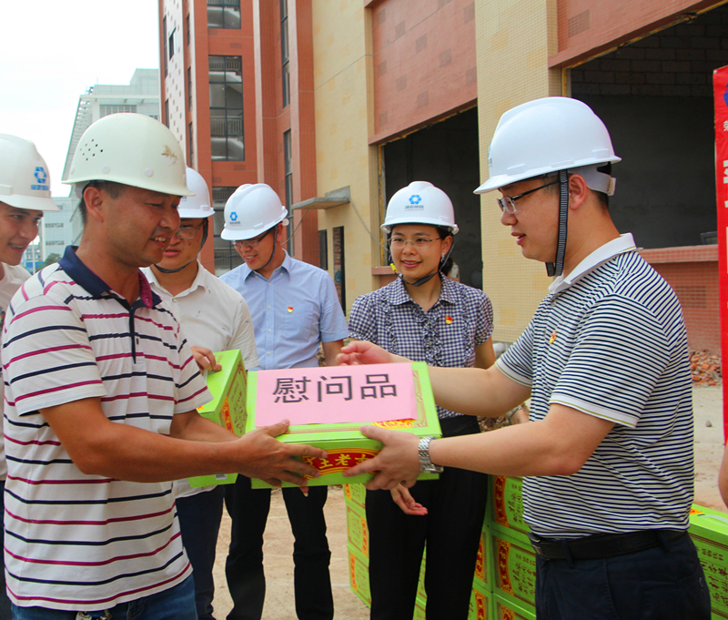 集團(tuán)黨委書記、董事長(zhǎng)、總經(jīng)理龔國(guó)強(qiáng)為項(xiàng)目一線人員送上清涼慰問品