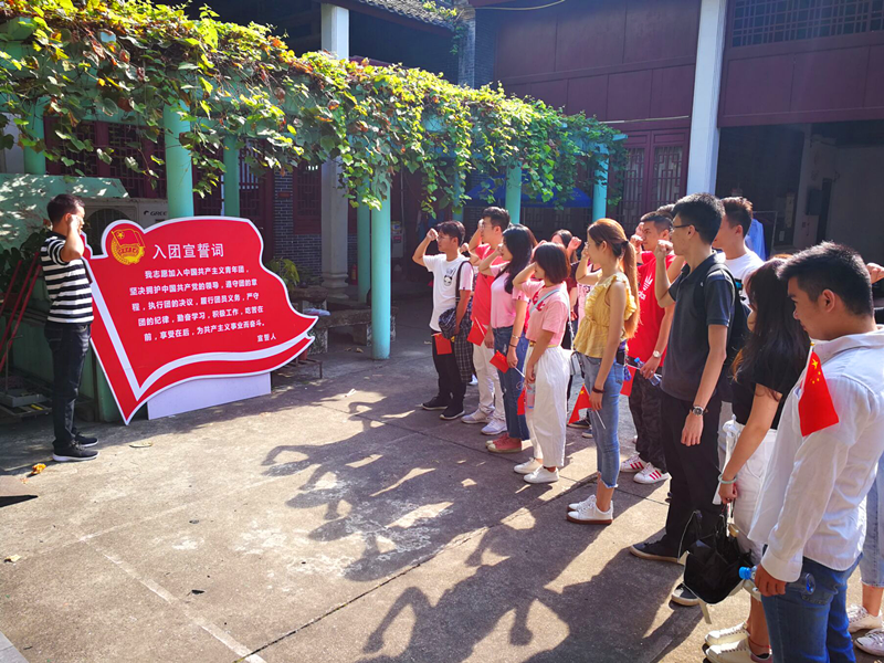 南寧快速便捷的地鐵,很快就把大家安全送到了今天活動的第一站--共青團南寧地委舊址,它位于南寧市北寧街47號,被列為自治區(qū)重點文物保護單位。1926年11月7日,共青團南寧地委就在這里成立,指揮領導南寧青年投入如火如荼的革命運動,直到幾年前這里都仍然是南寧市共青團委機構所在地。今天綠港青年來到這里,瞻仰珍藏在紀念館內(nèi)的銅制團徽,重溫入團誓詞,感受革命年代青年團員同志的昂揚斗志,繼承共青團良好的革命傳統(tǒng),接過時代的接力棒,奮斗新時代。