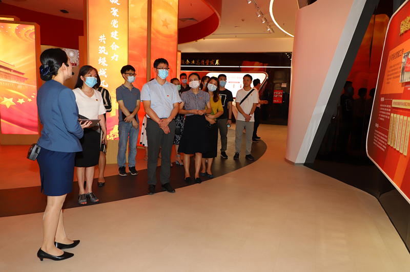 黨建文化示范中心講解員向綠港集團考察團講解黨建品牌的特色打造