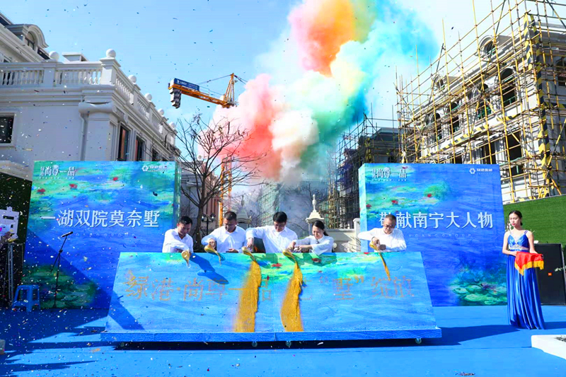 隨后,在現(xiàn)場(chǎng)賓和客戶的見證和熱烈喝彩聲中,綠港集團(tuán)總經(jīng)理鄧?yán)^慧、綠港集團(tuán)副總經(jīng)理黃麗琴、綠港集團(tuán)副總經(jīng)理傅杰鋒、綠港集團(tuán)營(yíng)銷管理中心副總經(jīng)理林崇凱、嘉通公司副總經(jīng)理何小勇攜手上臺(tái),共同啟動(dòng)開放儀式,一幅美好生活的畫面由此鋪陳。